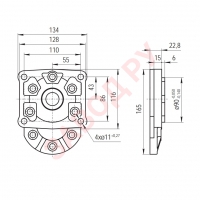 вал: SAE B splined (13 teeth), фланец: SAE B 2 bolt, присоединение гидролинии: GAS threaded